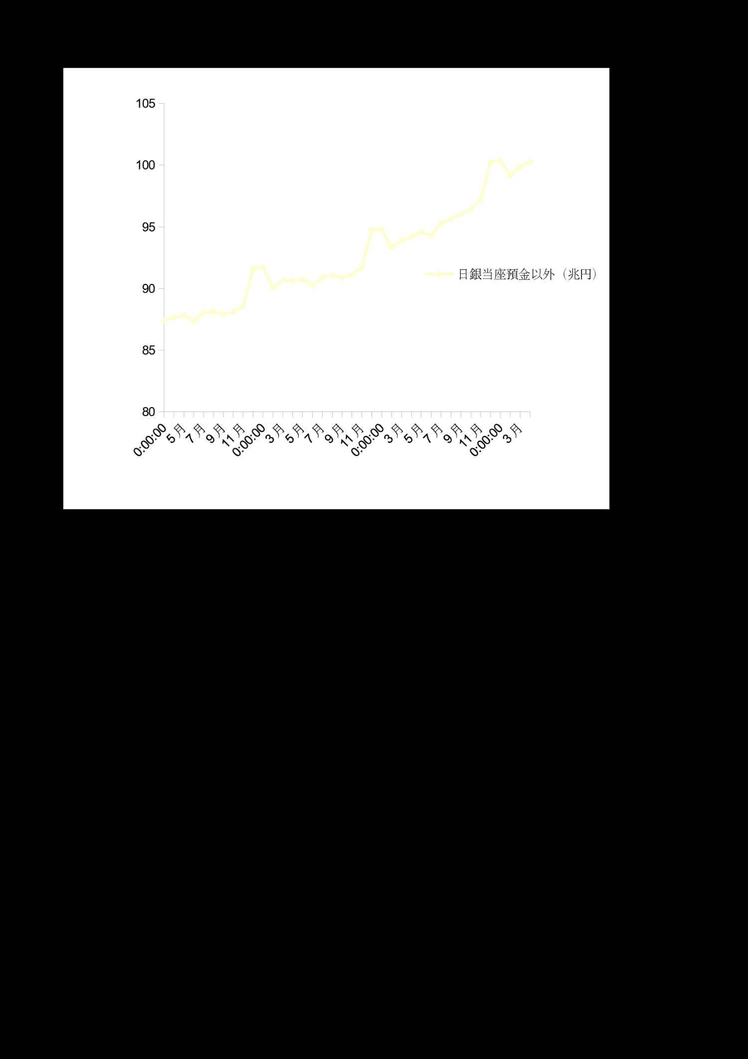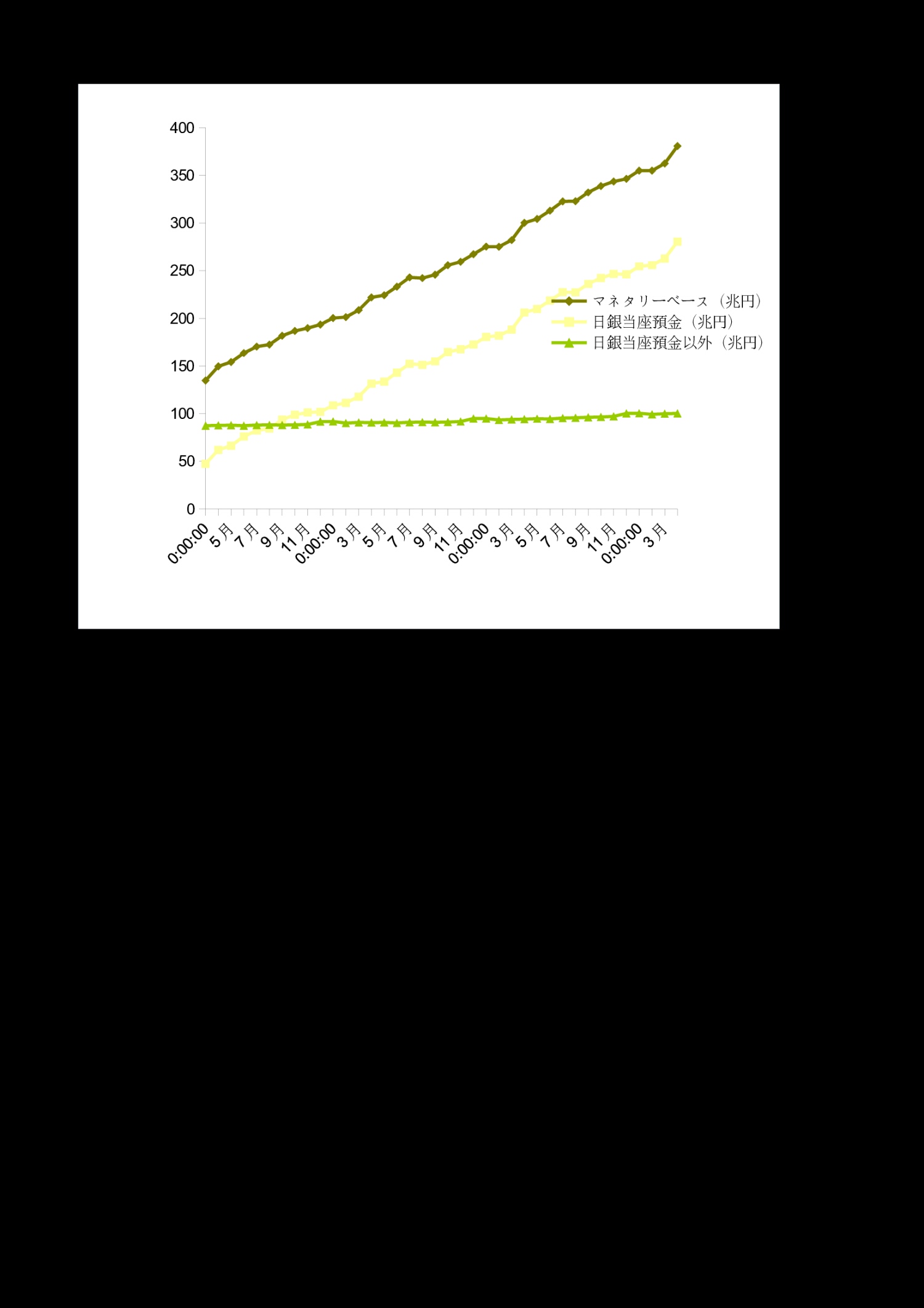 | 月 | マネタリーベース(兆円) | 日銀当座預金(兆円) | 日銀当座預金以外(兆円) |