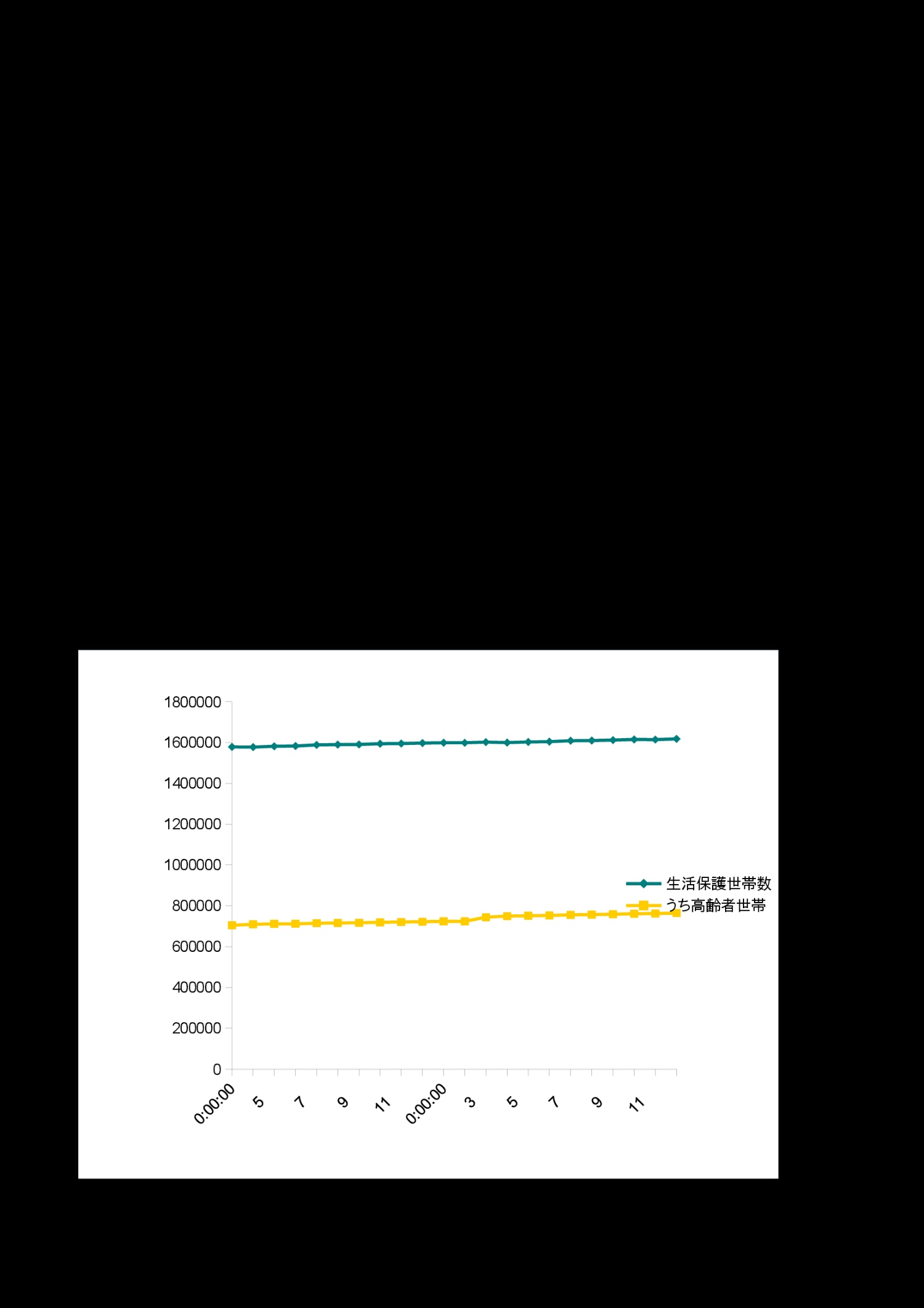 | 月 | 生活保護世帯数 | うち高齢者世帯 |