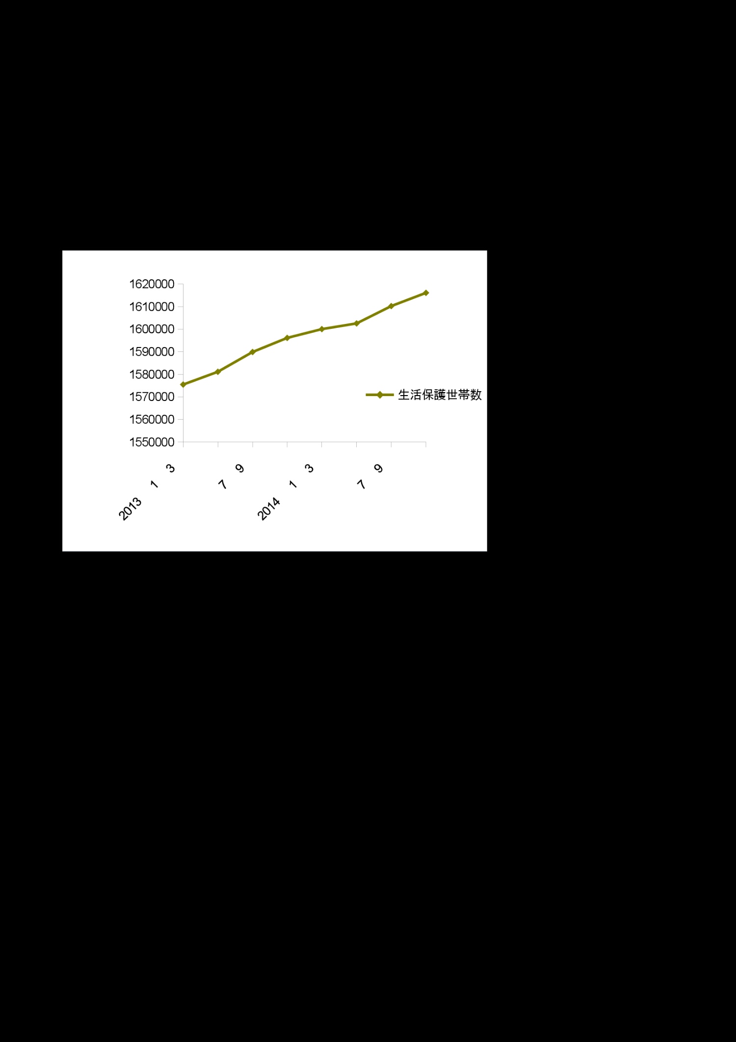 異次元緩和直前からの生活保護世帯数の推移(グラフ)