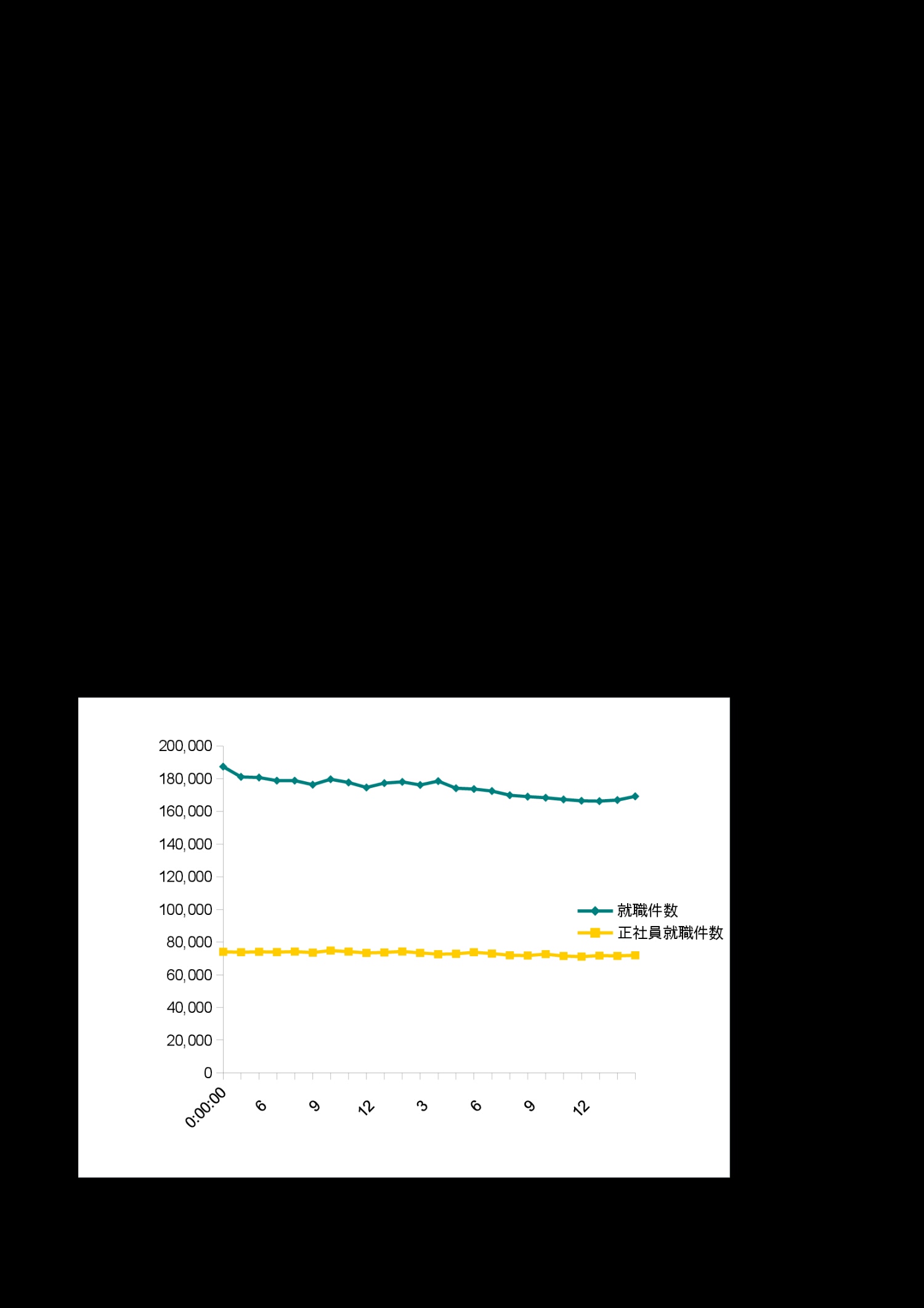 異次元緩和直前からの就職件数の推移(グラフ)
