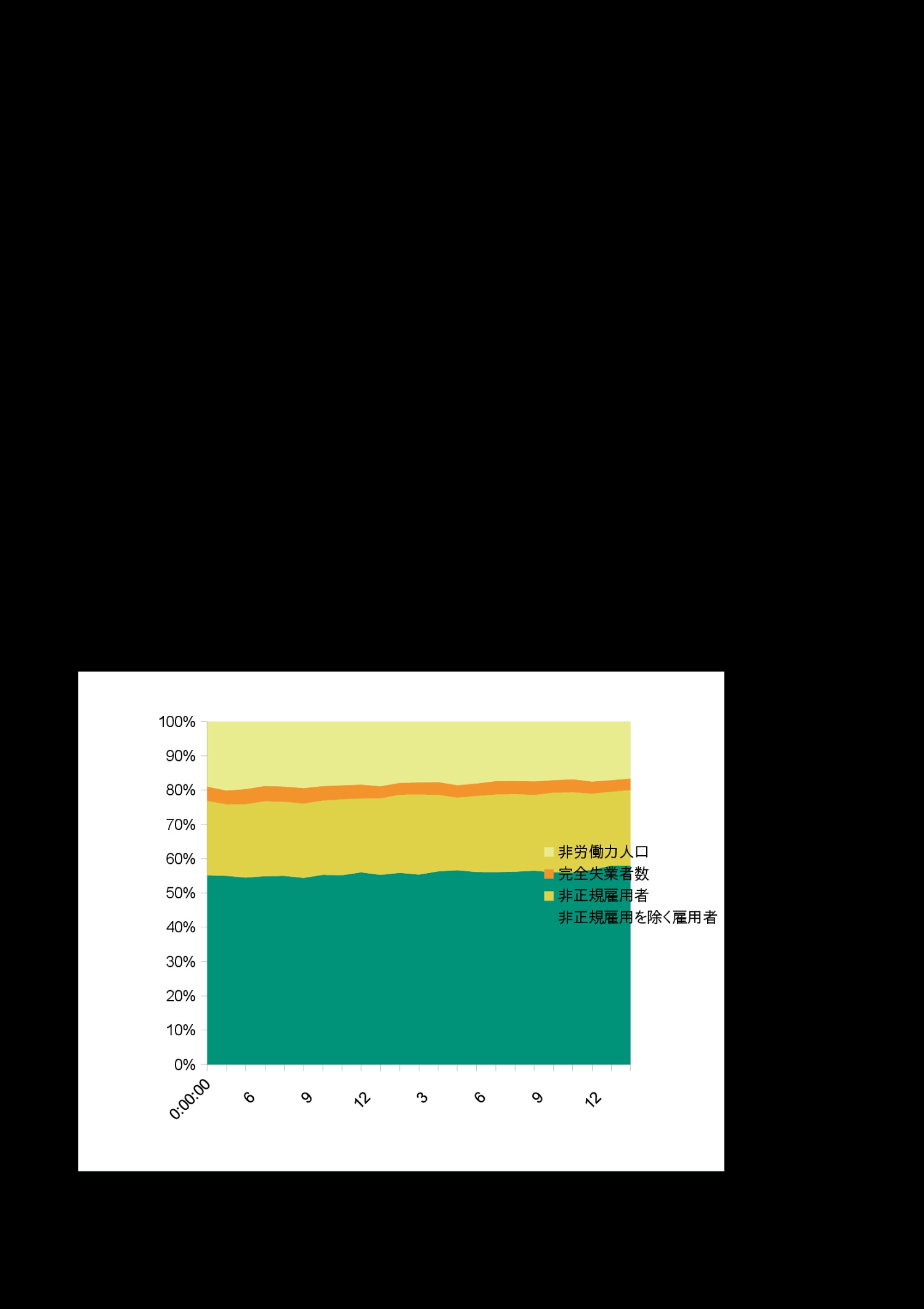| 月 | 非正規雇用を除く雇用者 | 非正規雇用者 | 完全失業者 | 非労働力人口 |