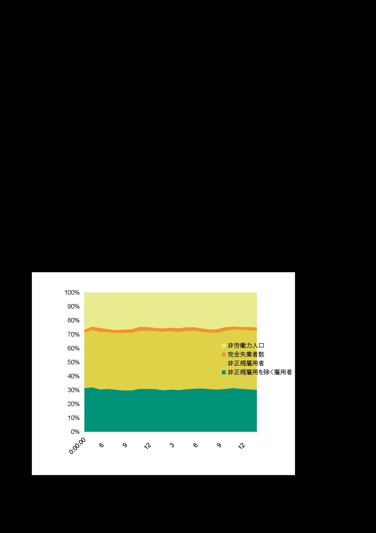 | 月 | 非正規雇用を除く雇用者 | 非正規雇用者 | 完全失業者 | 非労働力人口 |