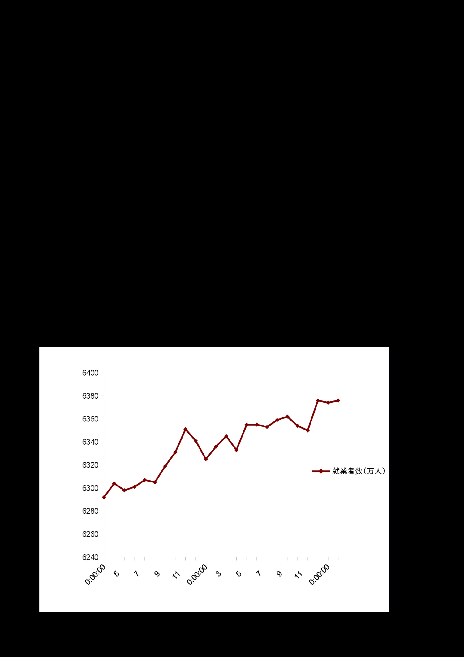 異次元緩和直前からの就業者数の推移(季節調整値)