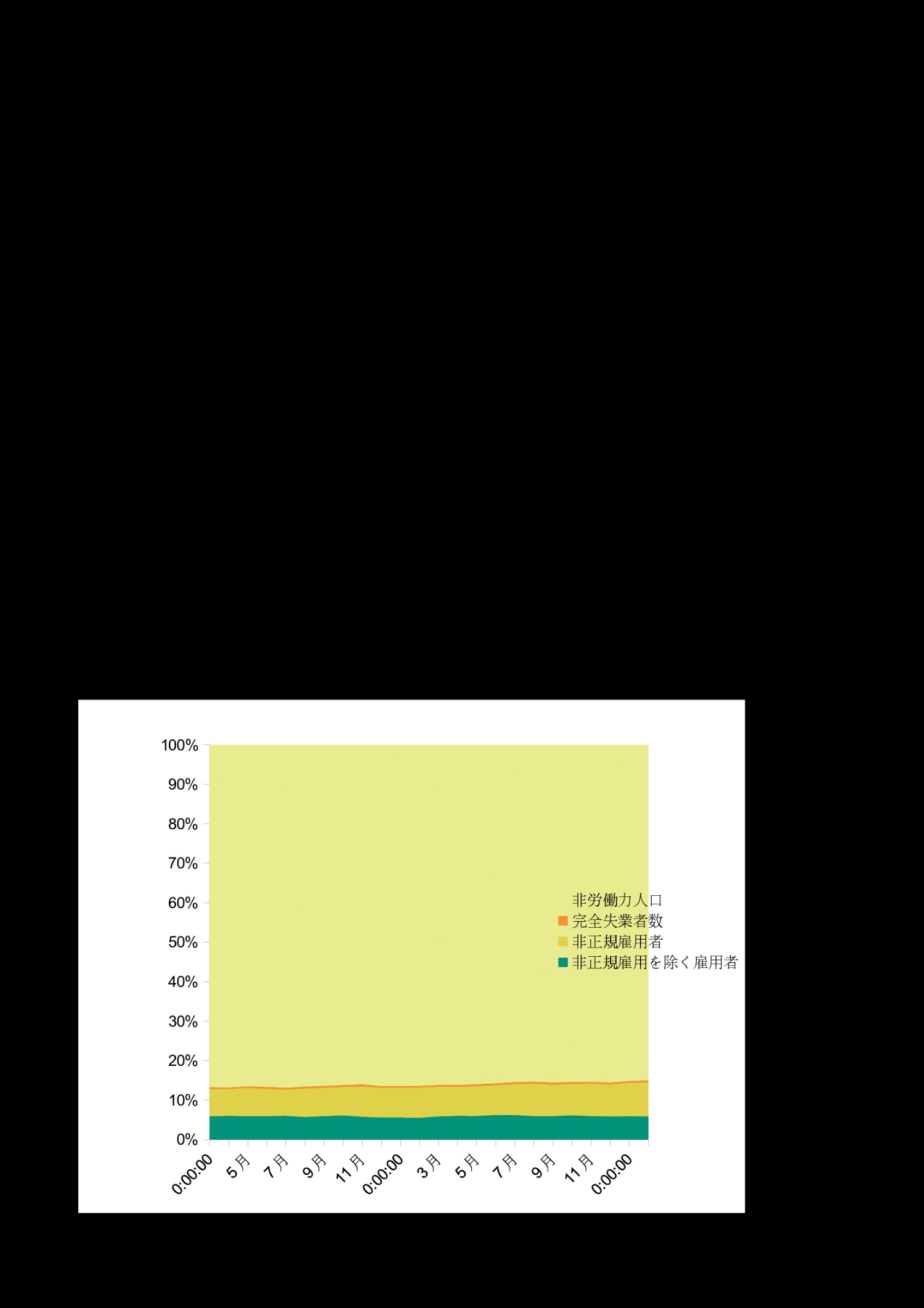 | 月 | 非正規雇用を除く雇用者 | 非正規雇用者 | 完全失業者 | 非労働力人口 |