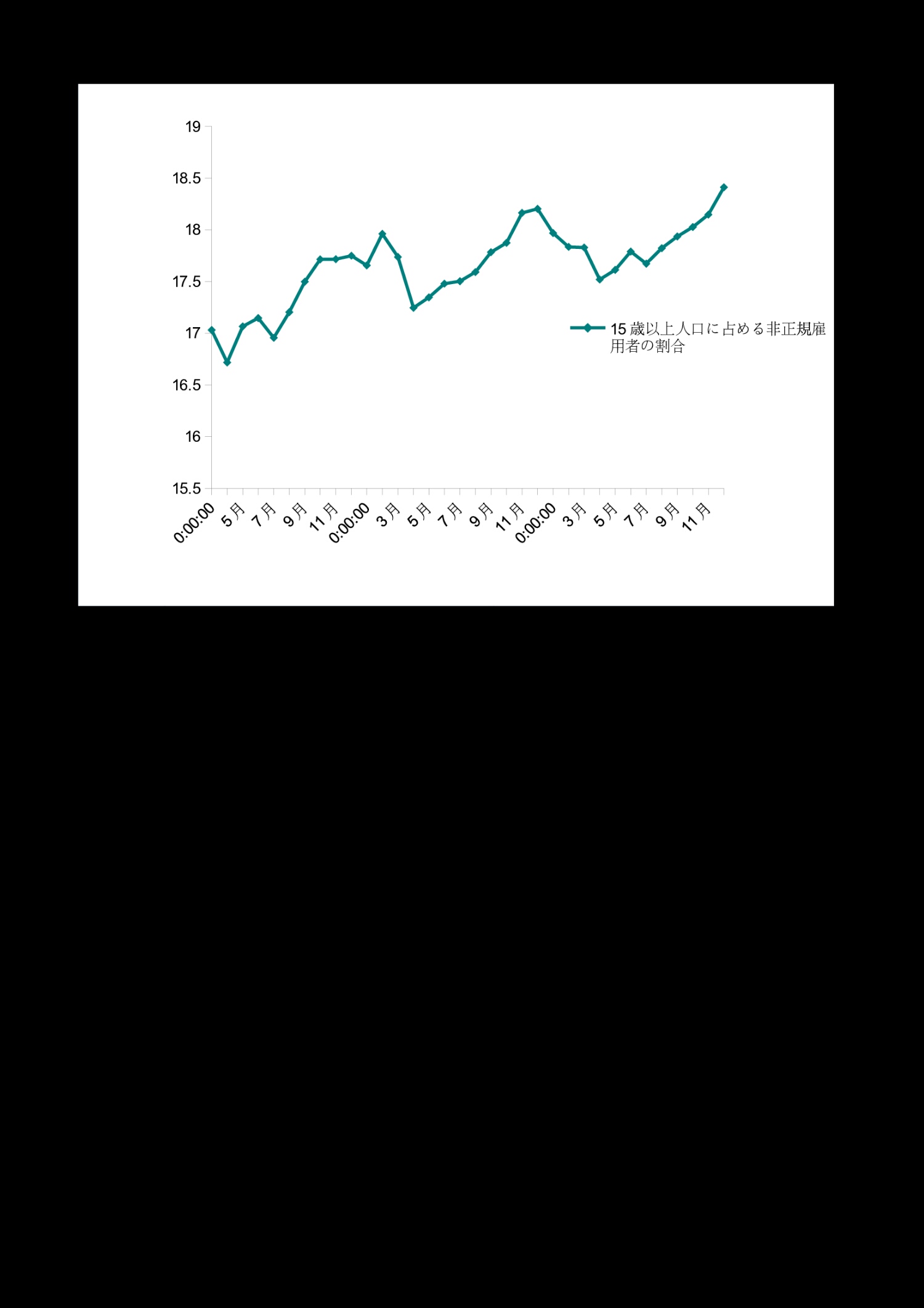 | 月 | 15歳以上人口に占める非正規雇用者の割合 |