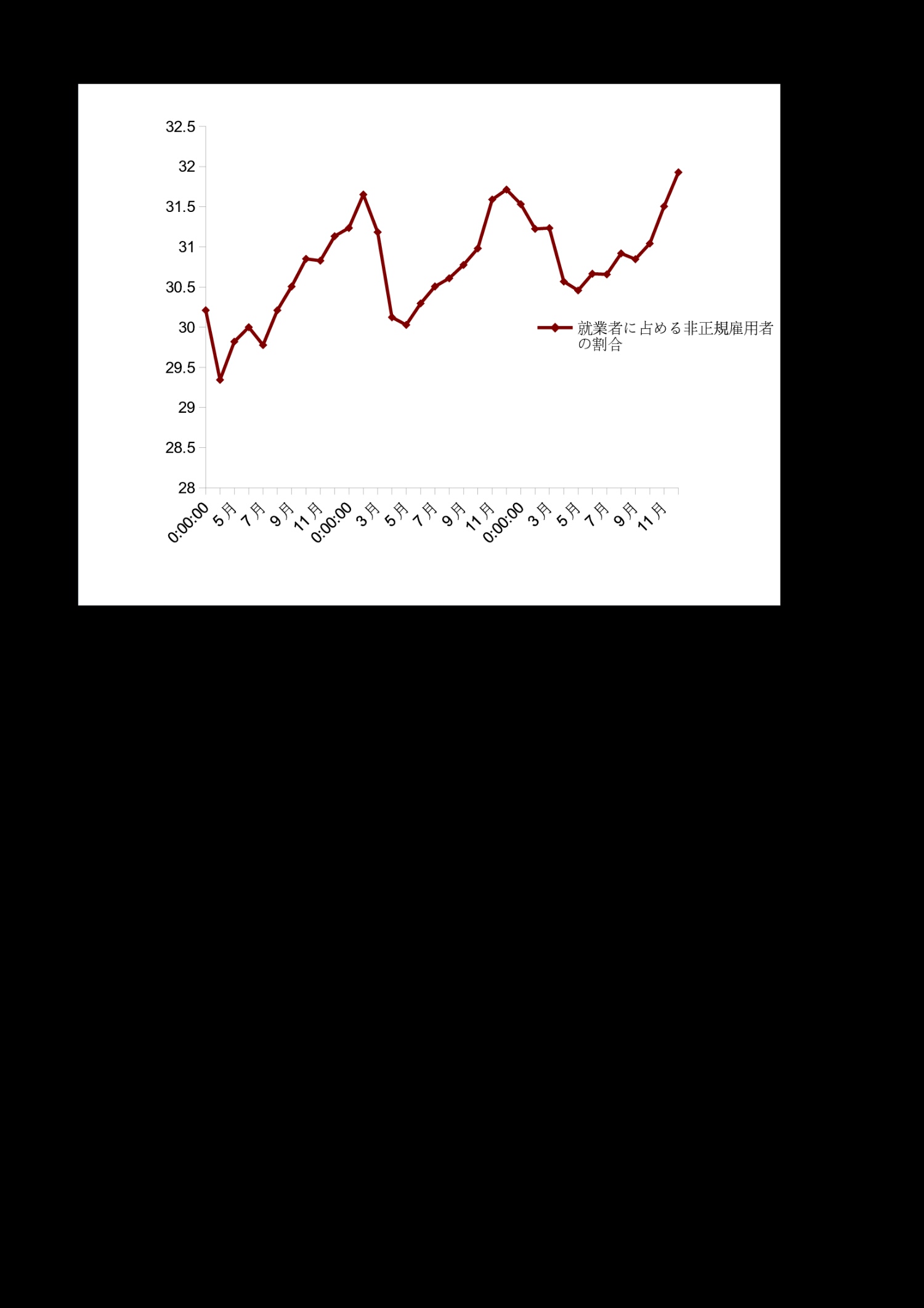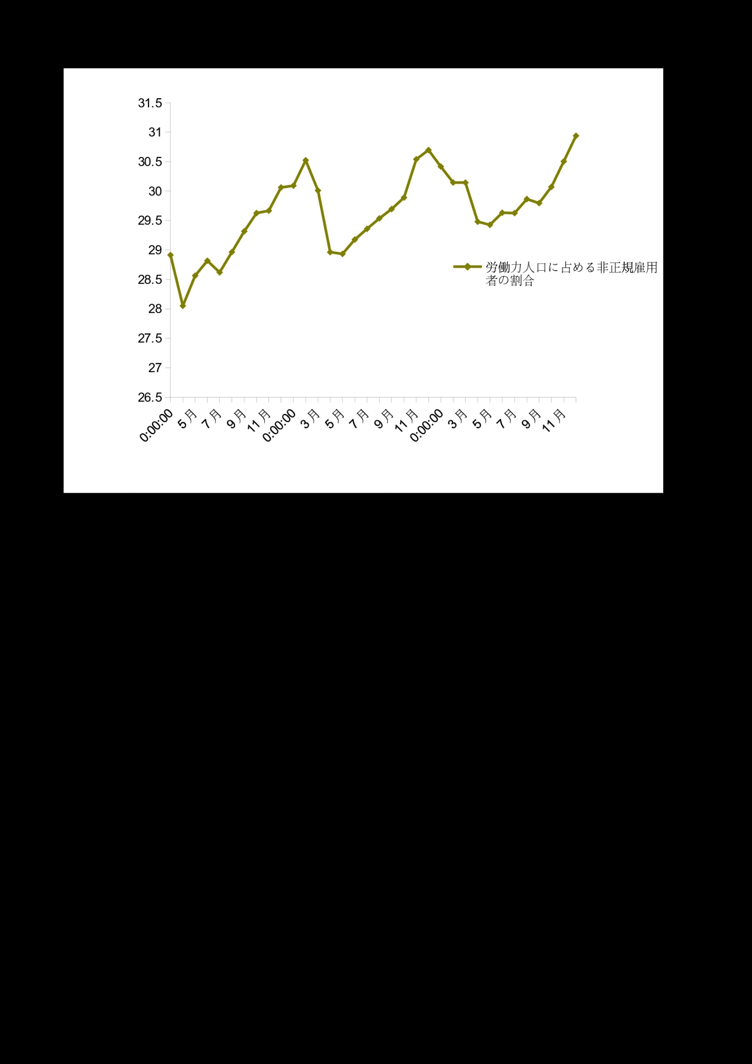 | 月 | 労働力人口に占める非正規雇用者の割合 |